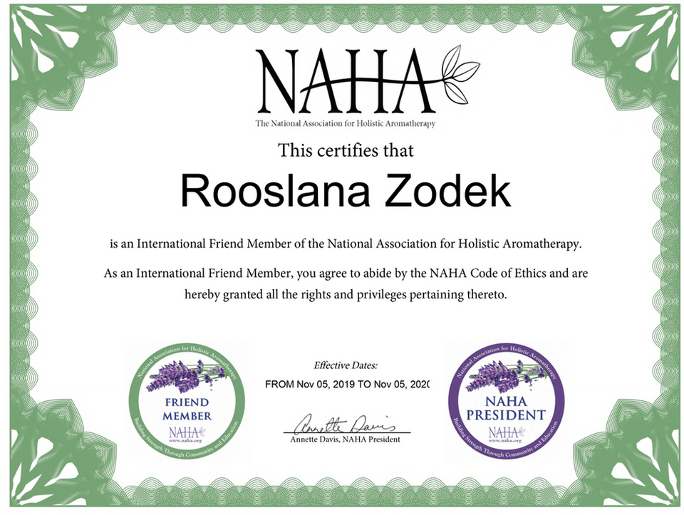 Always a student - Rooslana takes advantage of worldwide online learning opportunities and continues to learn from top-notch professionals to stay up to date on what is happening in the Aromatherapy and Nutritional communities.